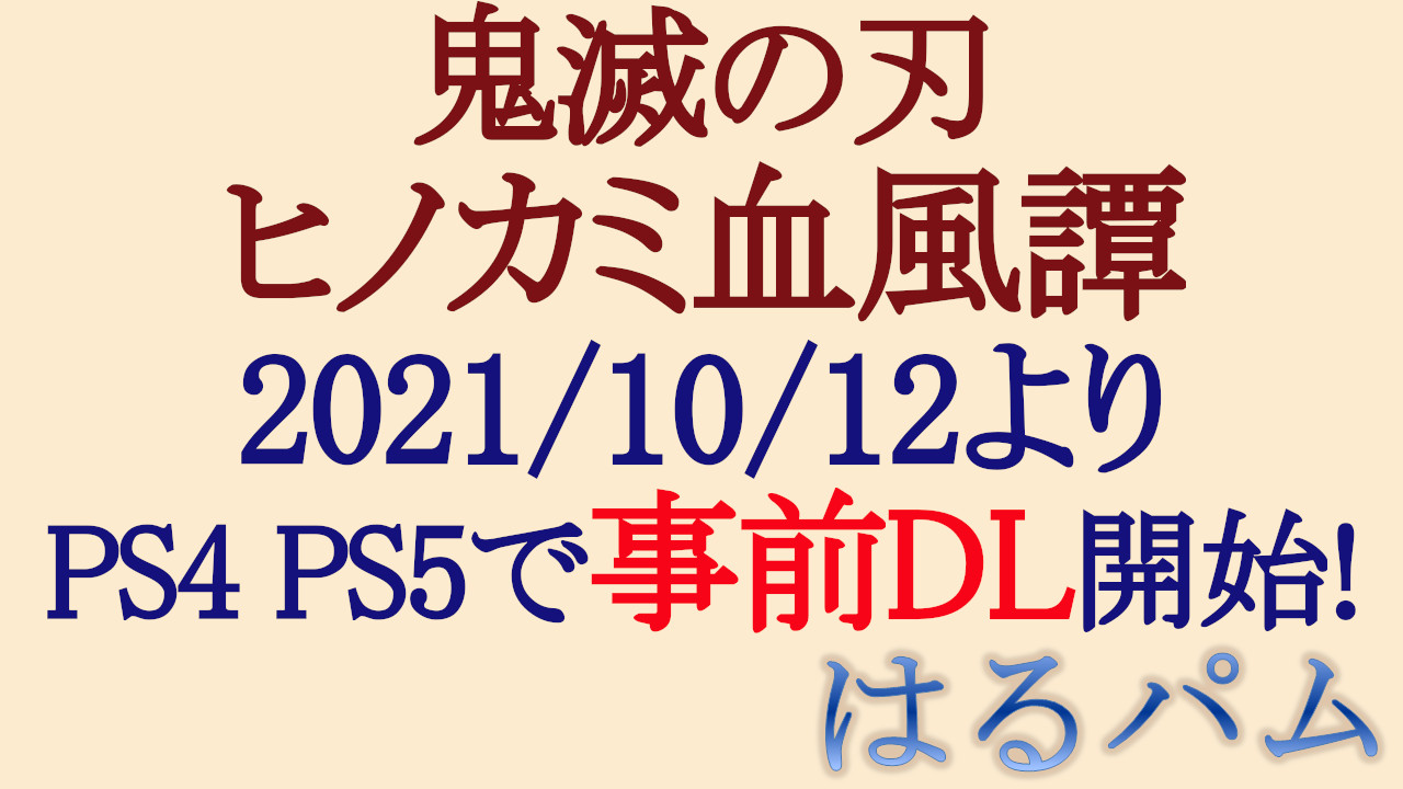 いよいよ発売まであと2日となった鬼滅の刃 ヒノカミ血風譚ですが、なんと、発売日の0時からプレイ可能になると情報を得て詳細を見てみると、PS4とPS5で2021/10/12(火)よりダウンロード版を購入した方は事前にダウンロードをすると14日の発売日の0時にプレイが可能になるとのこと。