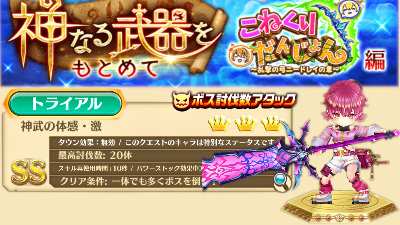 こねくりだんじょん~乱撃の弓ニードレイの章~のイベントで追加になった神進化!武器の進化に神進化というのが追加され、より強い武器に進化させることができます!